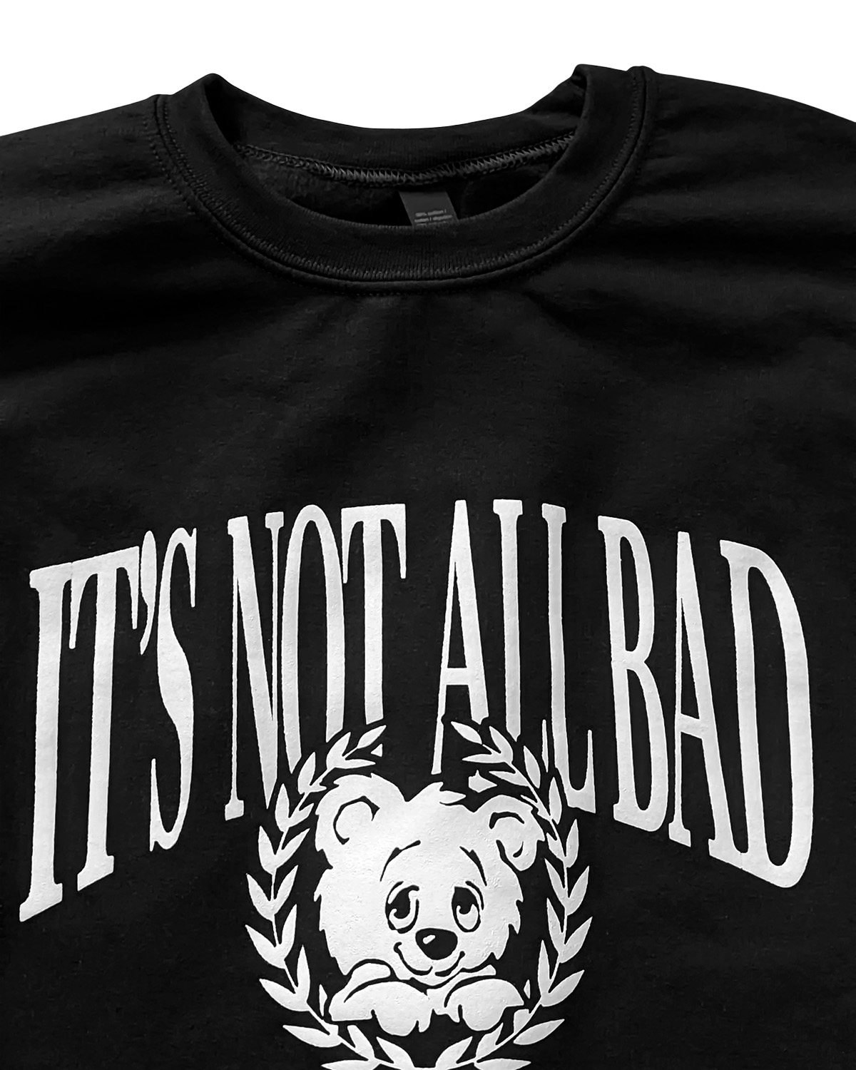 Super limited drop! It’s Not All Bad goes sporty & clean, ahora en sudadera negra impresa en serigrafía
